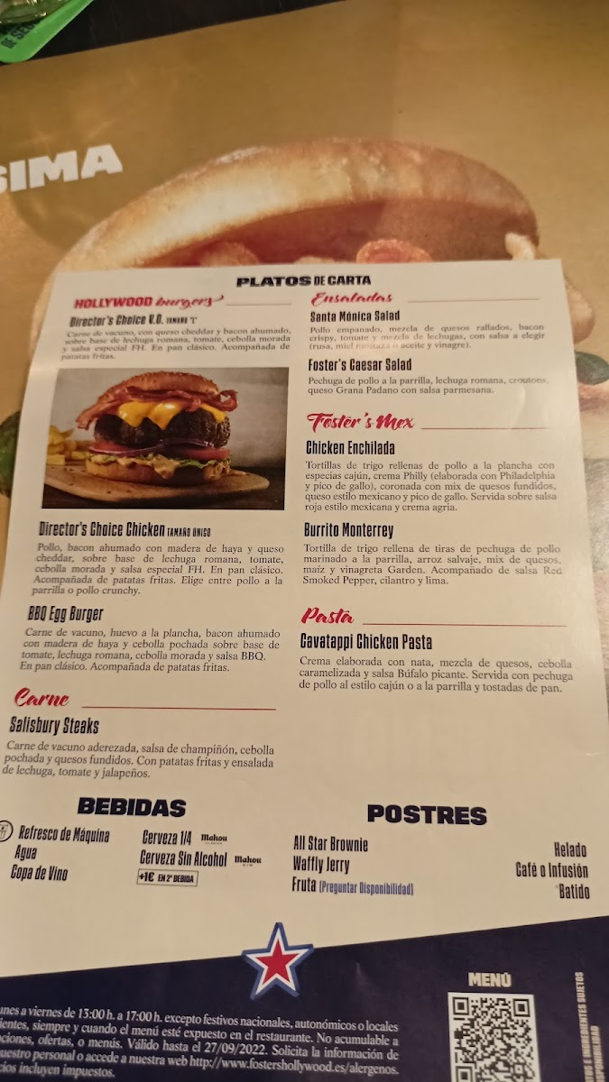 Introducing the menu at Foster’s Hollywood